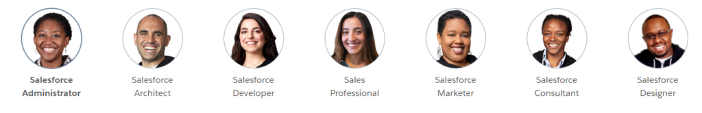 The Salesforce certification program offers 7 different paths based on candidates’ professional aspirations. Each category includes multiple options that focus on specific aspects of Salesforce. These paths include the following: